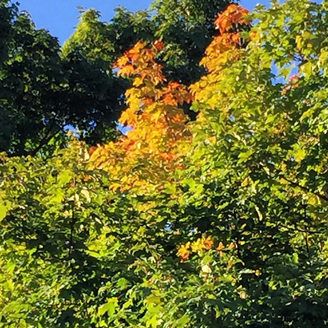 Neither of us know enough science to understand the process which trigger sthe color change in our local foliage. We’ve had an unusually cool summer, and the past few days have been almost chilly - we had each pulled on a sweater before we set out with the dogs last night - so perhaps that’s one reason for this crimson frosting.